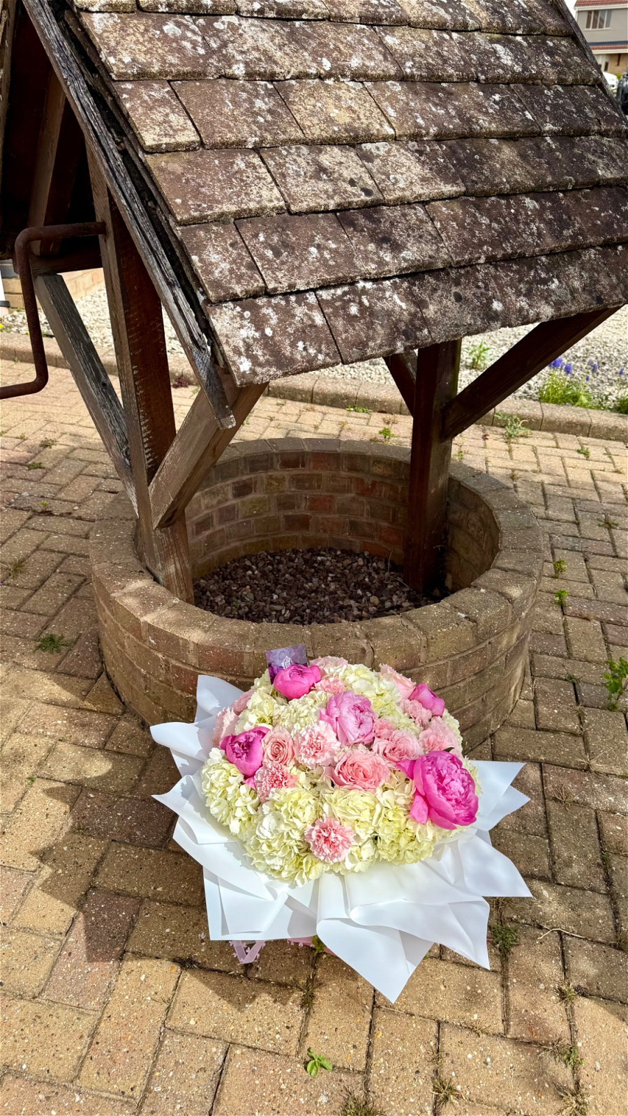 A soft and romantic arrangement, this bouquet brings together luxurious peonies, delicate roses, ruffled carnations, and full, cloud-like hydrangeas. Designed in a beautiful palette of blush pinks and creamy whites, it creates a timeless and elegant look that feels both fresh.