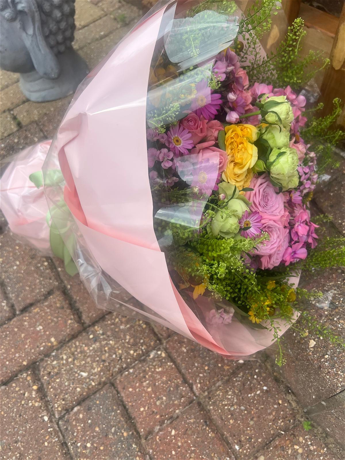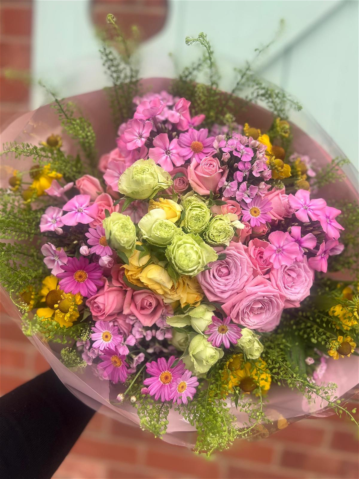 This stunning bouquet is inspired by the charm of a countryside garden, featuring delicate spray roses and lush greenery to capture a fresh, natural look. Perfect for any occasion, it’s artfully arranged and wrapped in elegant round wrap, finished with a luxurious silk bow. Presented in an aqua pack for freshness and convenience, it’s a beautiful gift that brings the garden to your doorstep.