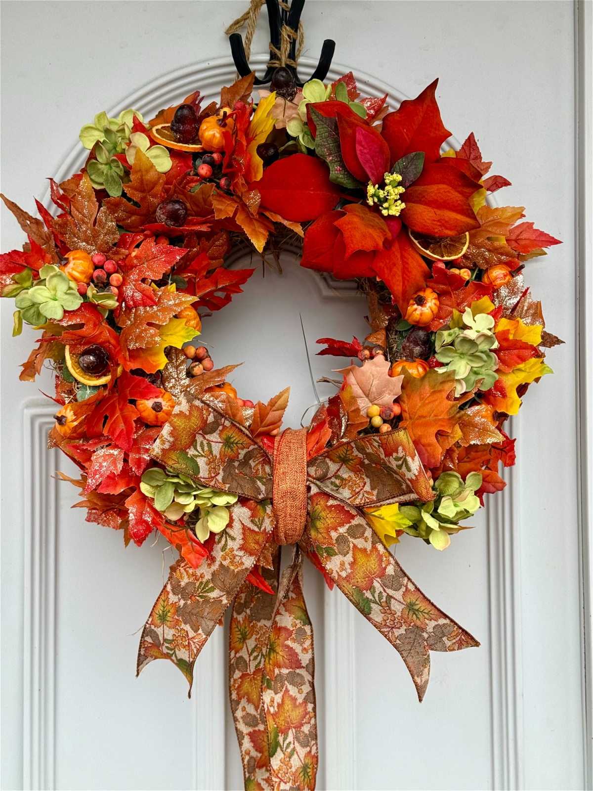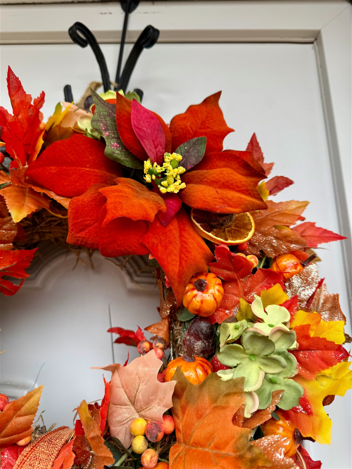 Welcome the cozy charm of fall with our handcrafted Autumn Harvest Wreath, a stunning statement piece for your front door or interior décor.